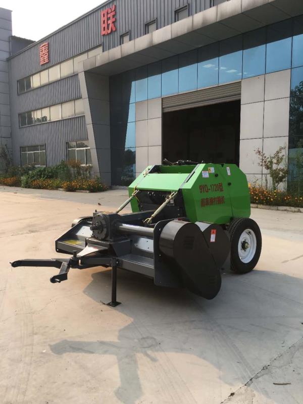 秸稈粉碎打捆機(jī)在拖拉機(jī)動力輸入及行走中先將又粗又壯的秸稈粉碎揉搓,在機(jī)器的離心作用下,將物料拋送到特定的喂料轉(zhuǎn)子。喂料轉(zhuǎn)子將物料送到輸送輥,通過輸送輥送到圓捆機(jī)捆室內(nèi),當(dāng)一個(gè)草捆完成后,扎線機(jī)構(gòu)扎臂自動落下,壓上行程開關(guān),蜂鳴器自動鳴叫,警示燈亮,對草捆進(jìn)行扎結(jié)。此時(shí)應(yīng)停止拖拉機(jī)行駛,但動力輸出軸須正常工作,當(dāng)捆繩完成后,捆繩被割斷停止捆扎,扎臂又重新回到原來起始位置,此時(shí)搬動開倉按鈕,即活動倉打開,通過拋送稈拋向地面后拖拉機(jī)繼續(xù)行走進(jìn)入下一道循環(huán)工序,該設(shè)備操作簡單,質(zhì)量上乘,是農(nóng)民發(fā)家致富及秸稈工業(yè)化利用理想設(shè)備,對需青貯秸稈配上包膜機(jī)可以進(jìn)行飼草青貯。